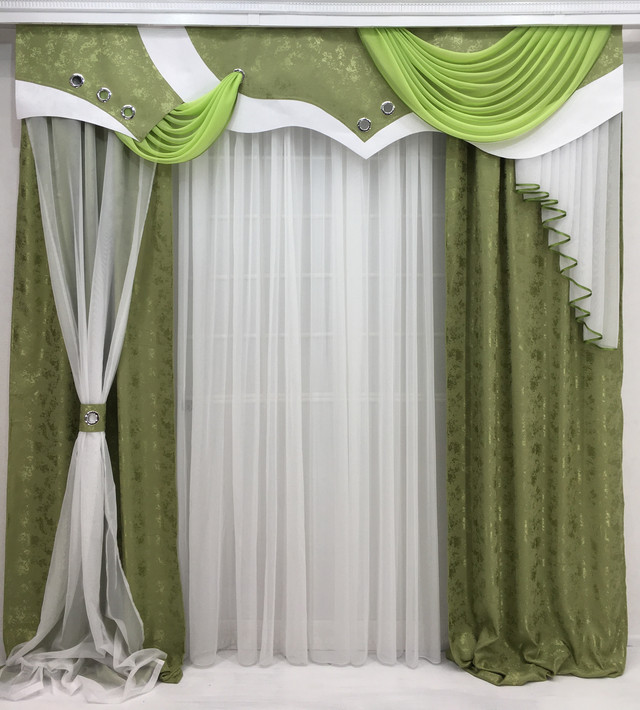 Готовий комплект штори + жорсткий ламбрекен "Мадрид" Оливка