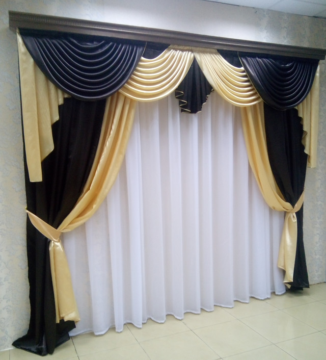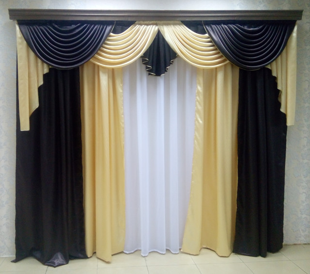 Спосіб кріплення: пришита шторна тасьма до ламбрекену та шторах.