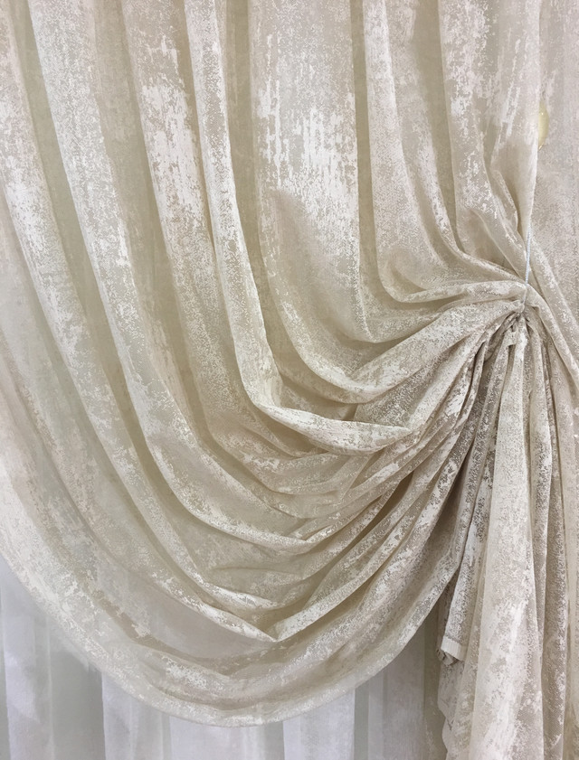 Это наиболее распространенные, классические виды тюля. Однако существуют и более авангардные варианты. К ним относят, например, сжатый тюль или полевое полотно, на котором специальной кислотой вытравливается рисунок, а также полотно с узором из резиновой нити.