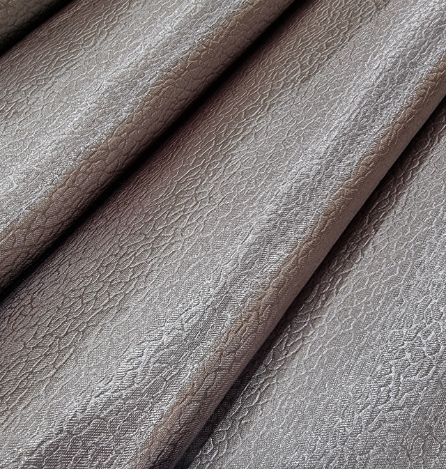 Штори пошиті з тканини в мілкий рубчик, має відлив рідкого металу теплого срібного відтінку. Ідеально підходить для Мінімалістичного стилю чи Лофт.