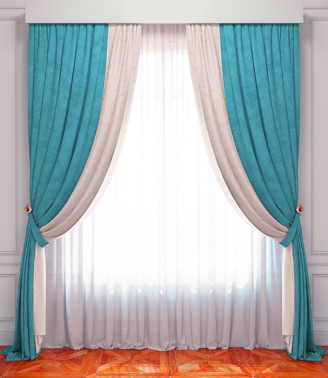Портьєри виготовлені з м'якої, матової тканини. Має дуже оригінальний вигляд! Усі елементи виготовлені на широкій шторній стрічці. Рекомендації щодо догляду: ручне або машинне прання за температури не більш ніж 30 °C, не вибілювати, не сушити в сушильній машині, прасувати за температури не більш ніж 150 °C.